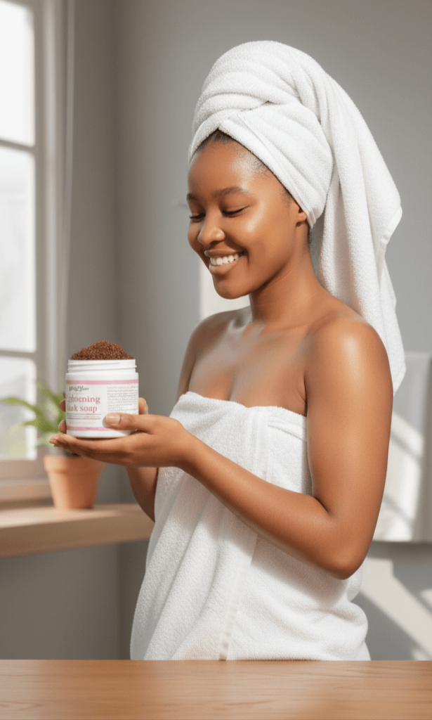 Our soap is enriched with skin-loving African botanicals that don’t just “whiten” they heal. We believe in high-potency ingredients that respect your skin’s health
